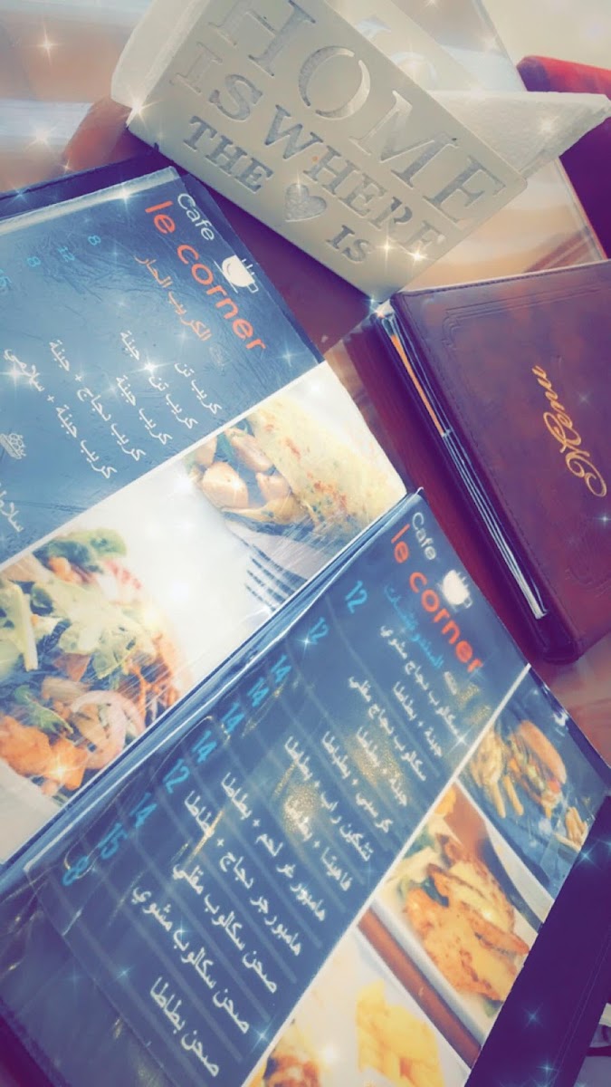 The menu at Le Corner Cafe Shop offers a variety of options focused on cafe-style dining and traditional meals suitable primarily for breakfast and light meals. Visitors can find a selection of hot and cold beverages including Arabic coffee, green tea with mint, and mojitos. The food menu includes items such as pancakes, traditional breakfasts, and healthy breakfast options referred to as "افطار صحي" and "فطور لي كورنو."